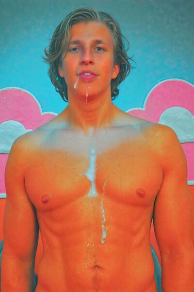 1057 votes Friday, February 27th, 2026 Portrait of a man modeling naked covered with cum in rococo set