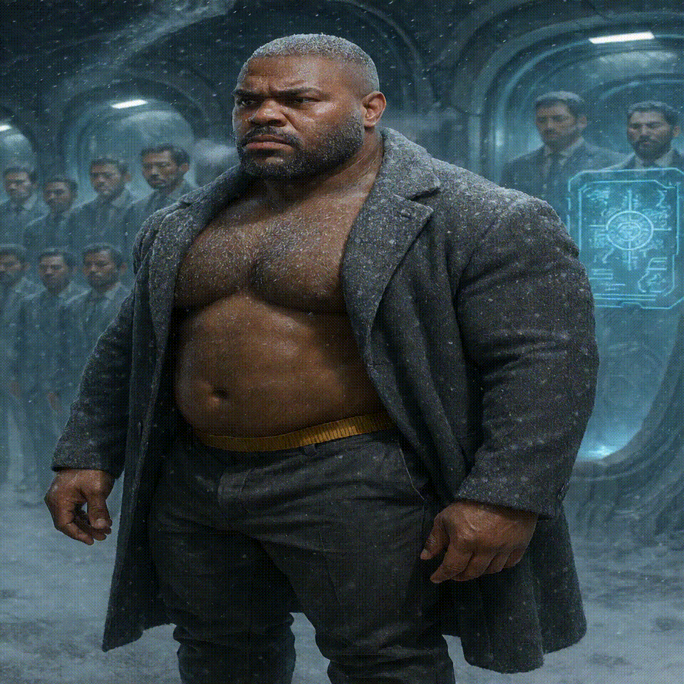 Handsome adult man gets snowed in a frostpunk utopia 1