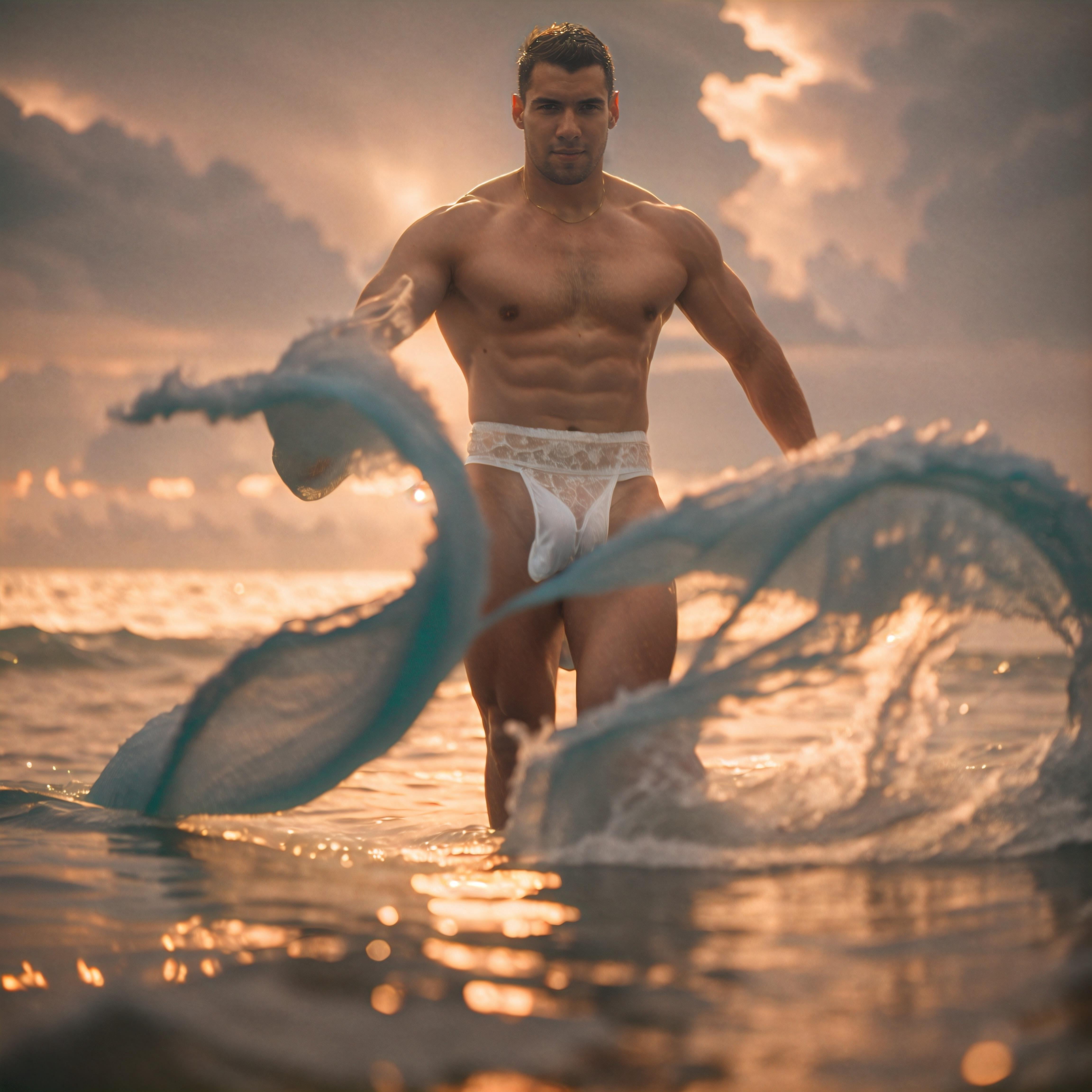 Photo of a man modeling at the sunset in the beach