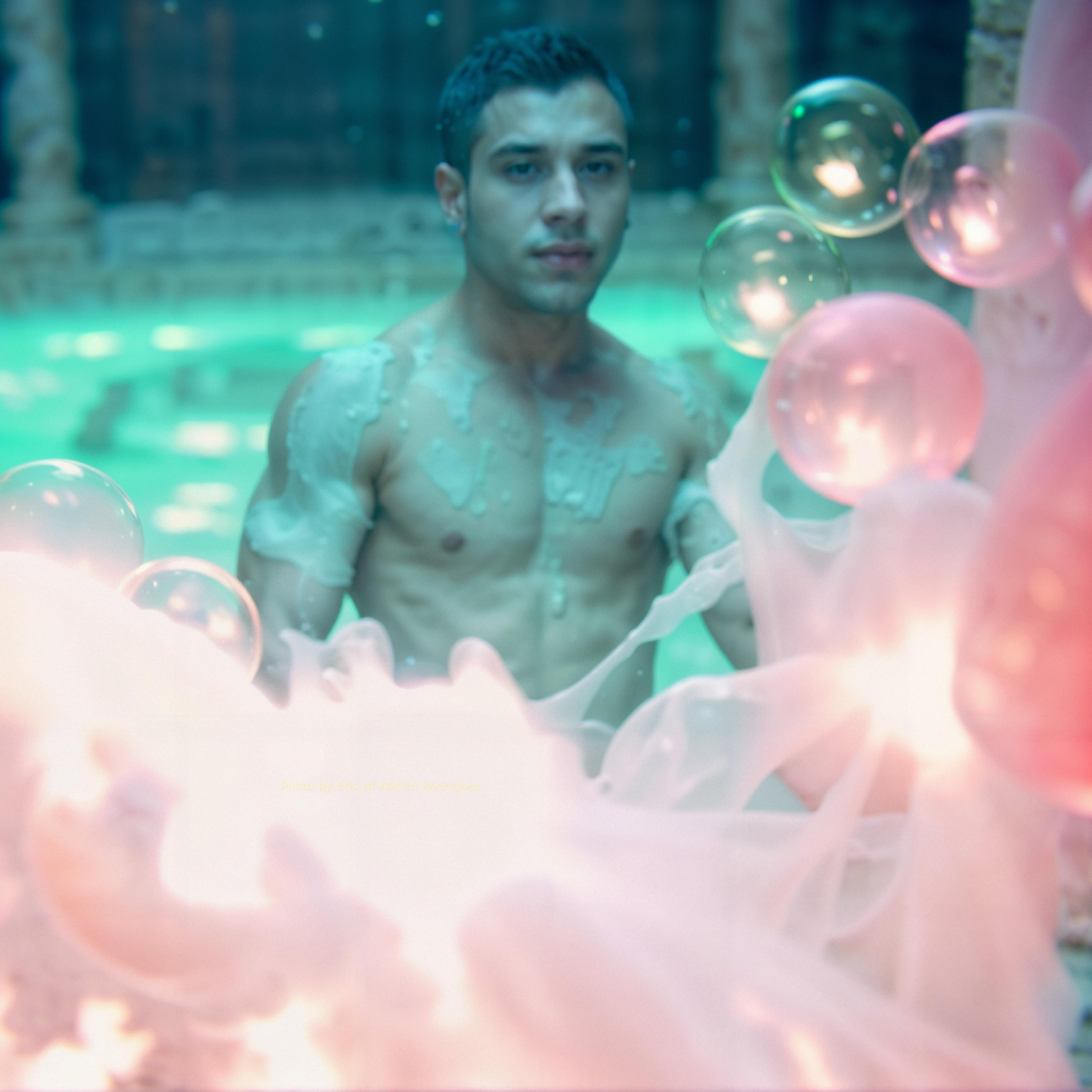 Photo of a man modeling in a roman temple