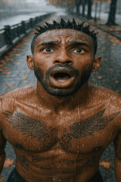 Handsome man blows in the autum rain 1