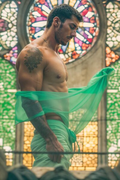 2037 votes Thursday, November 20th, 2025 Photo of a man modeling in a surreal church