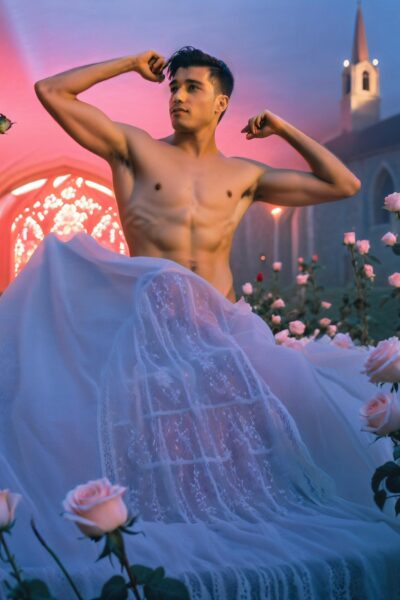 6211 votes Friday, November 21st, 2025 Photo of a man modeling in a surreal field of roses